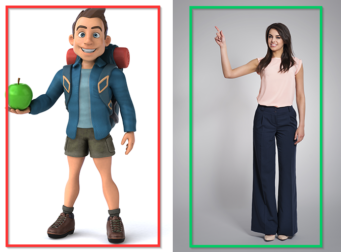 If you're using the upper-body mode and want the virtual character fully visible, the actor can be filmed down to below the waist without needing to be entirely within the frame.
