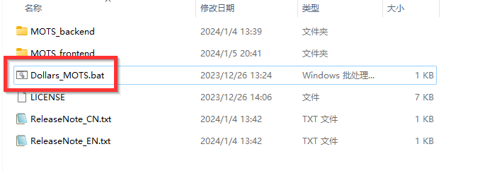 Dollars MOTS consists of both frontend and backend components. You can start both simultaneously by clicking on the Dollars_MOTS.bat in the Dollars MOTS directory.