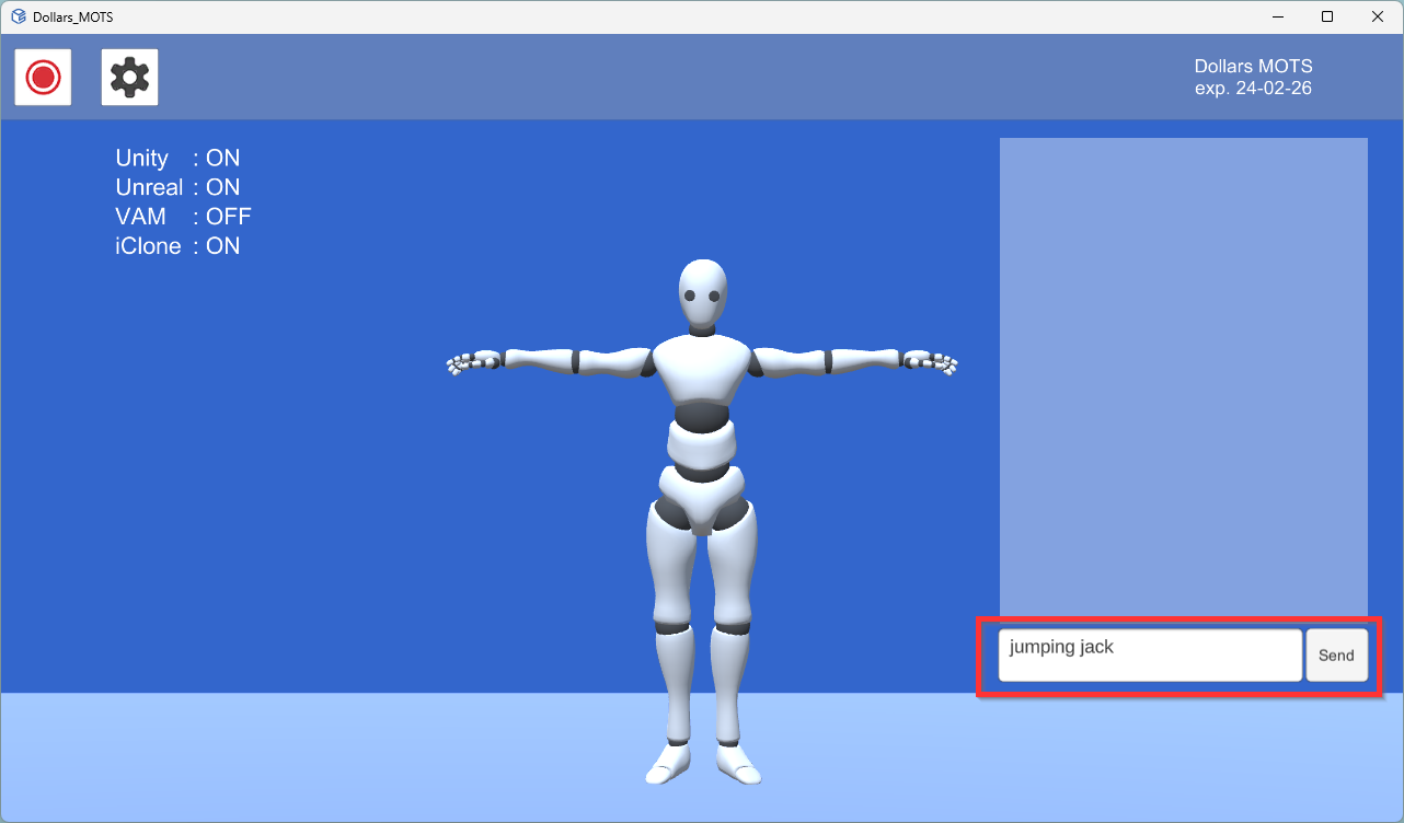Generated motions will appear in the list on the right side of the frontend program. Clicking on an item in this list will replay the corresponding motion.s