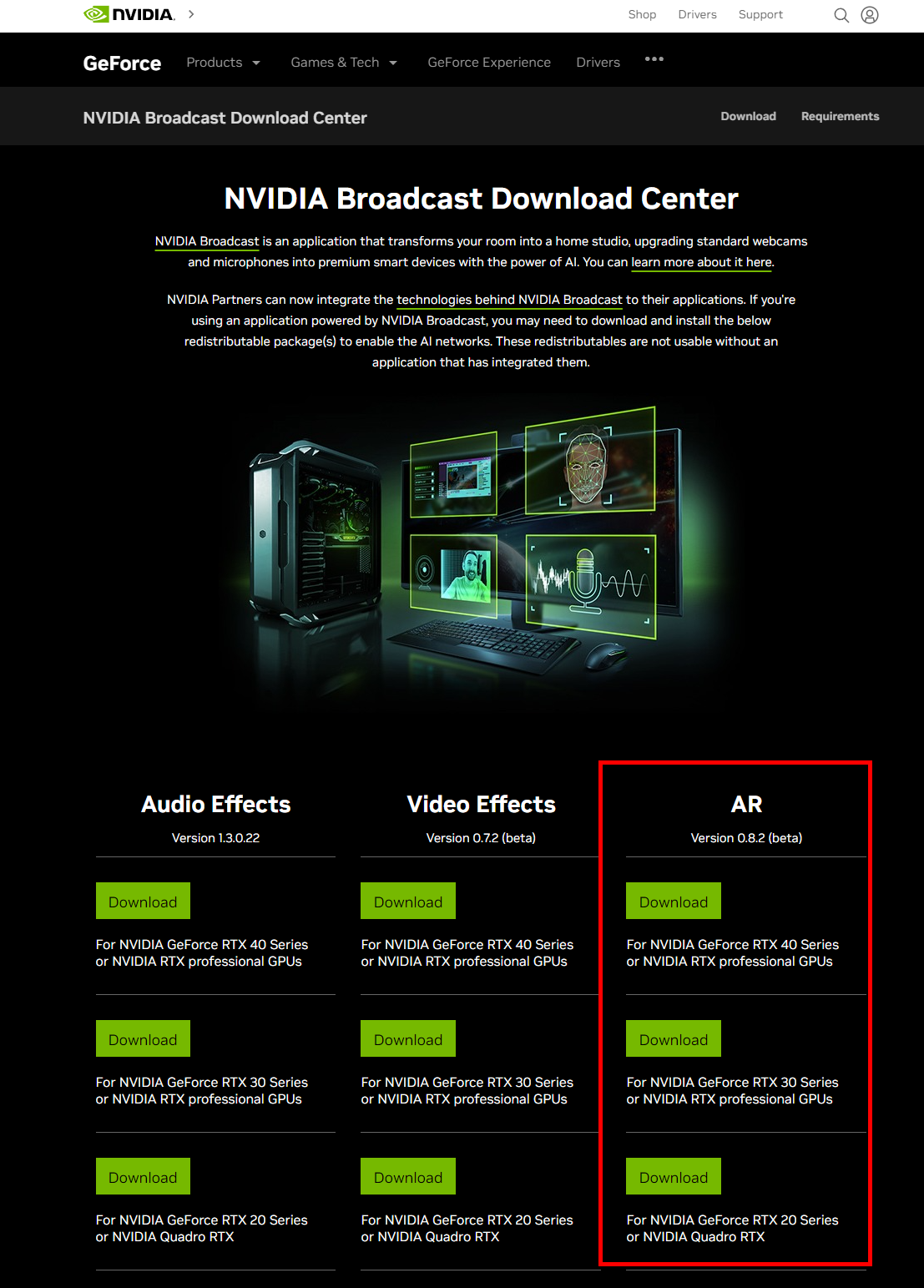 Before using Dollars NVIS, you need to download the corresponding package for your graphics card from the NVIDIA Broadcast Download Center and install it. Reboot is recommended after installation.
