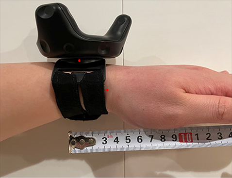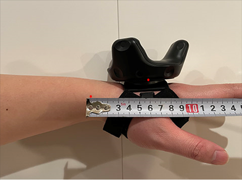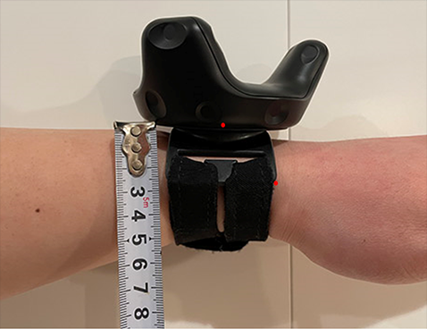 At this time, since the tracker is on the inside of your wrist, the horizontal offset would be a negative value. In the following image, it is approximately 3 centimeters.