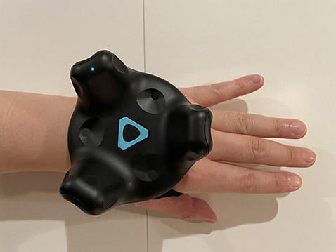 You can also wear trackers on your hands. The following image shows the tracker worn on the back of the hand.