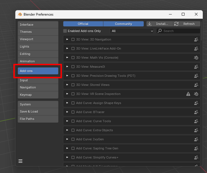 1. Switch to the Add-ons tab.
