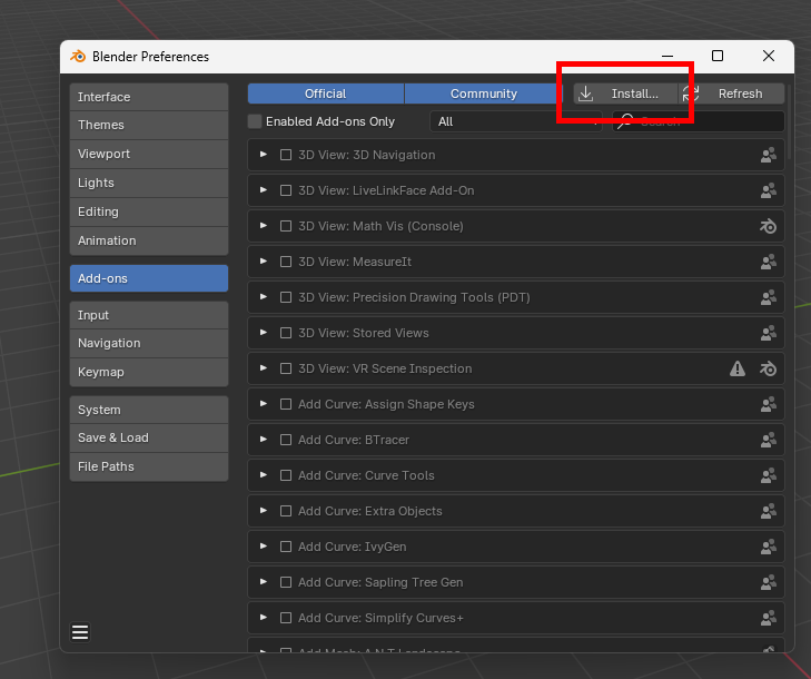 After downloading (no need to unzip), install it in Blender's Preference Menu as follows,