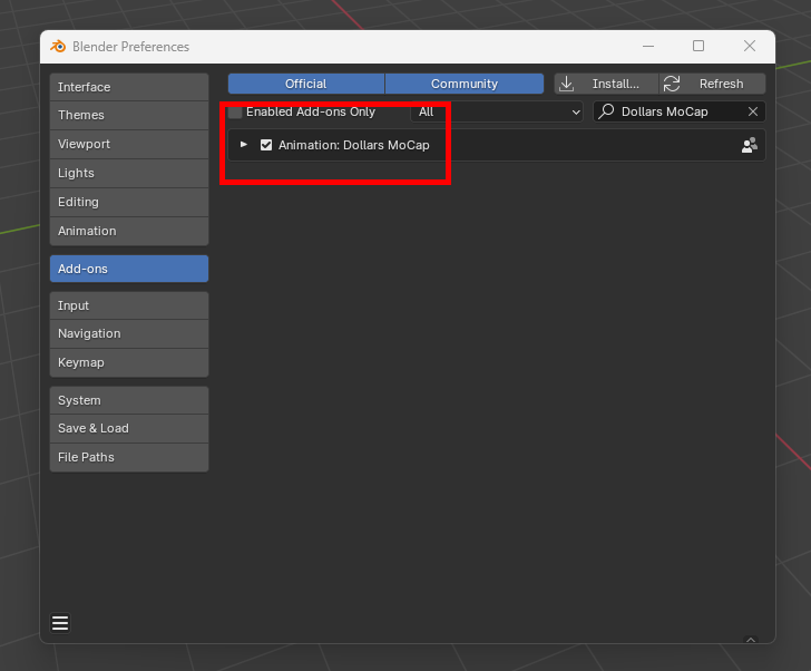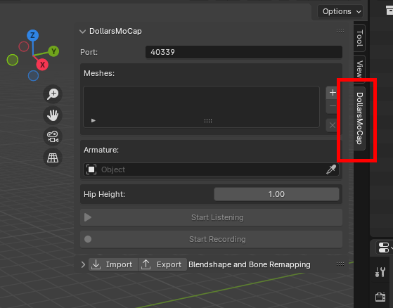 Once installed, you will find the DollarsMoCap tab in Blender’s sidebar.