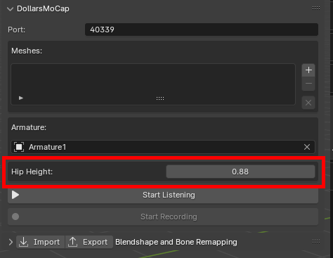 After setting up the hip bone, you can manually adjust the Hip Height parameter to match the actual hip height (in meters).