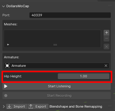 The addon will automatically detect the hip bone height, but you can manually edit this value (in meters) as needed.