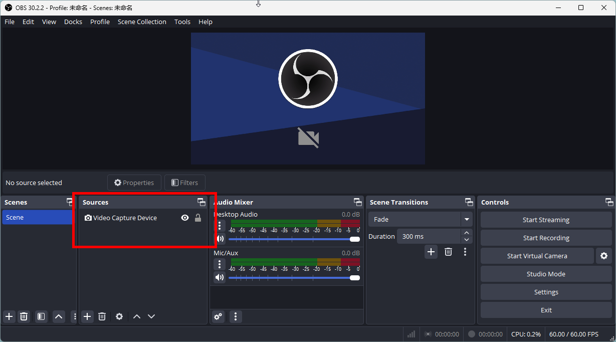 Open OBS and add a Video Capture Device.