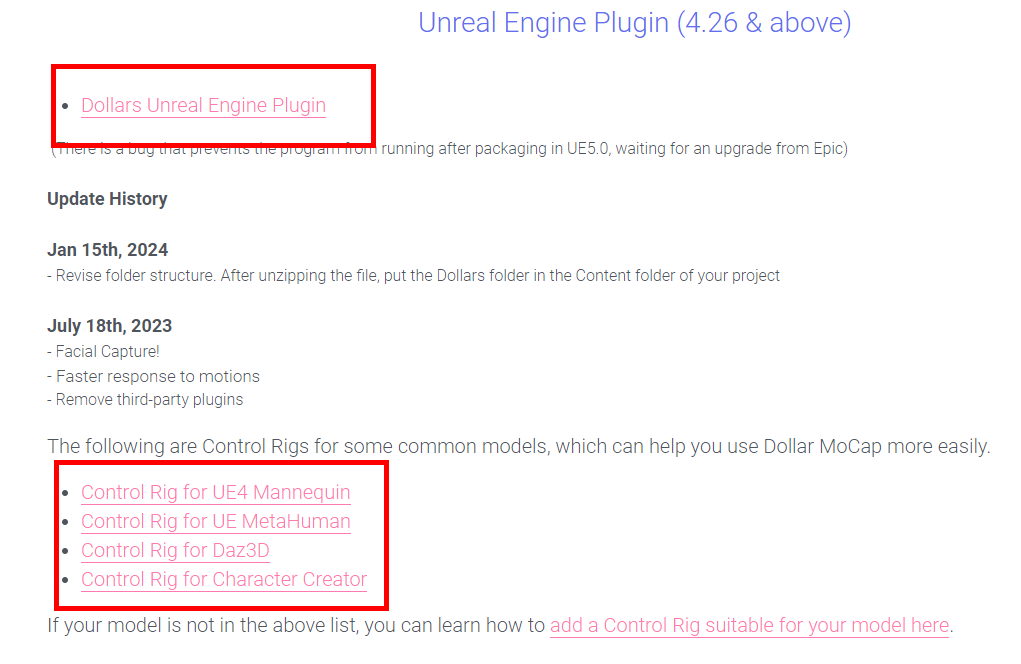 You need to download the Unreal plugin and the required Control Rig from the Dollars MoCap website.